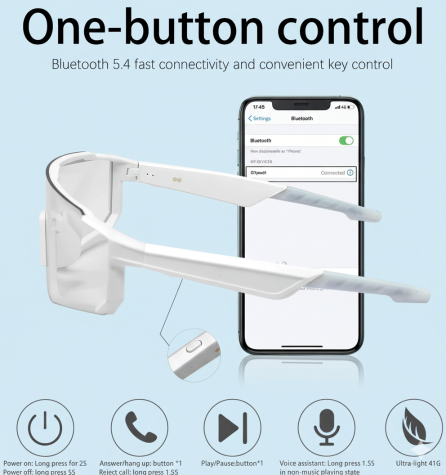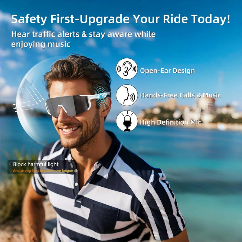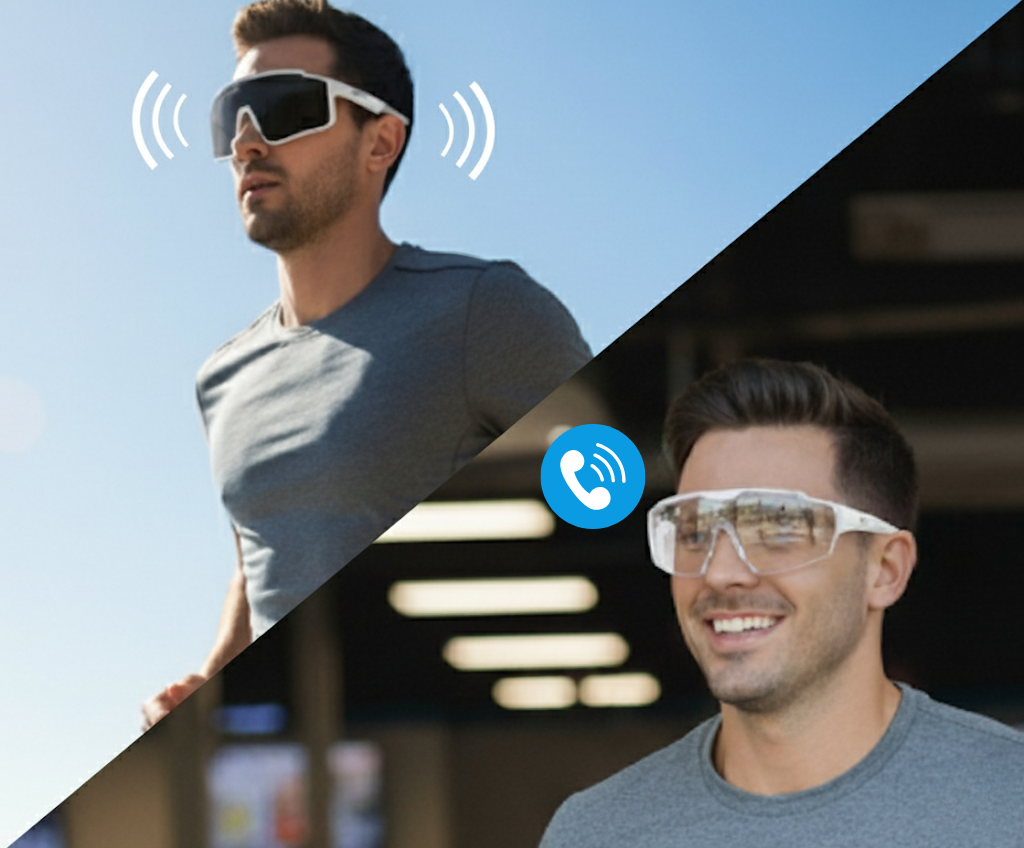 Ordinary sunglasses + separate earbuds, headphones, clutter, and hassle