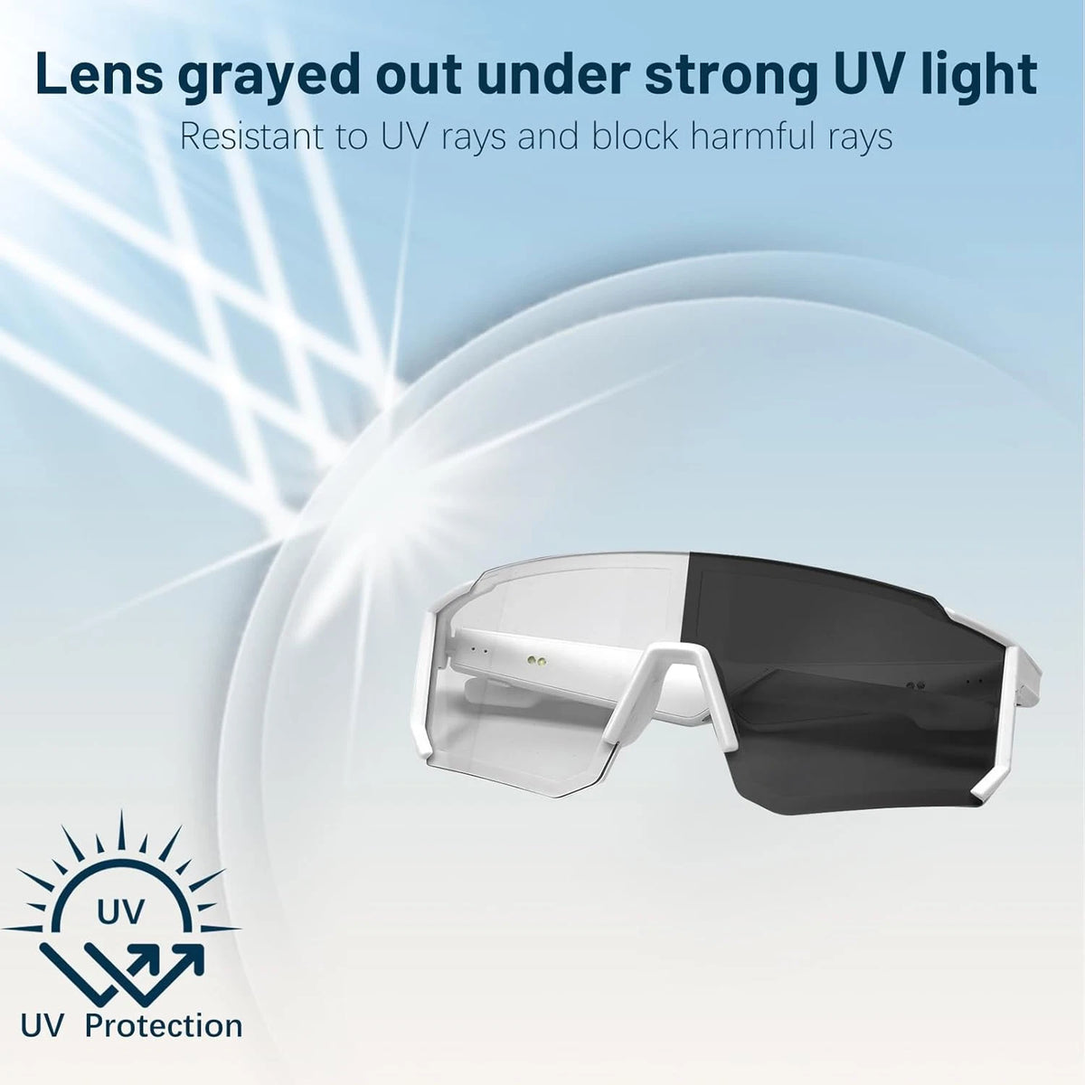 The photochromic lenses darken in seconds when exposed to UV light and gradually lighten again indoors. They adapt automatically based on brightness and environment.