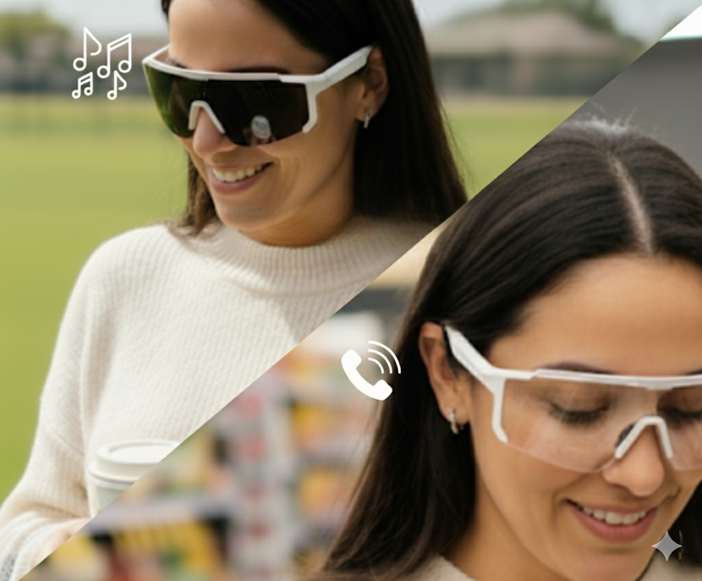 Our light-adaptive lenses integrate hands-free audio ensure your music, calls, and clarity never miss a beat-no matter where you are